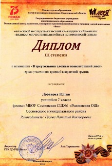 Курнавина Юлия - призер регионального этапа краеведческого исследовательского конкурса "Моя семья в истории страны"