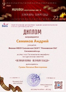 Семикова Наташа - победитель краеведческого исследовательского конкурса "Моя семья в истории страны 2015 год"