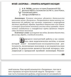 cтатья Ангелины Артемьевой статья Светланы Гундоровой о музее "Засережье"
