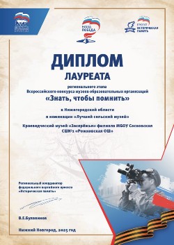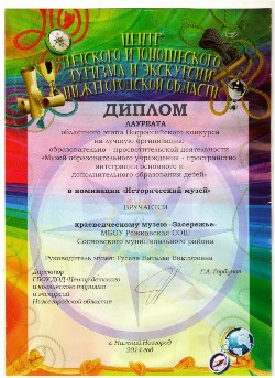 Музей Засережье - победитель конкурса школьных музеев Законодательного собрания Нижегородской области 2013 год